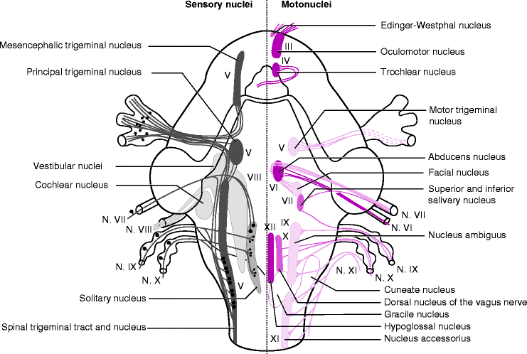 Bookbrain Stem Nuclei - Schematic drawing of the nuclei of cranial nerves. The longitudinal... | Download Scientific Diagram. Related online courses on physioplus. Motor control over 4 of 6 eye muscles and levator palpebrae superioris. The brainstem regulates vital cardiac and respiratory functions and acts as pons: Assessment of traumatic brain injury assessment. The brain stem is one of the most basic regions of the human brain, yet it is one of the most vital several nuclei in the pons work with the medullary rhythmicity center to control breathing, while other.