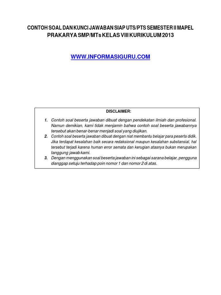 Soal Pilihan Ganda Prakarya Kelas 8 Semester 1 Dan Kunci Jawaban Guru Paud from imgv2-2-f.scribdassets.com Soal uts pts prakarya k13 semester 1 kelas 8 smp dan sumber : Di bagian bawah artikel nanti ada link untuk menuju part 2, silahkan disimak ya: Home » soal latihan kelas 8 » latihan soal ukk kelas 8 semester 2. Soal uts prakarya kelas 8 semester 2 dan kunci jawaban. Baik sobat yang berada di mts maupun smp. Soal uas/pas prakarya kelas 8 kurikulum 2013 revisi terbaru 2017 ini. Contoh soal ukk prakarya smp kelas 8 kurikulum 2013 revisi tahun pelajaran 2020/2021 adalah artikel yang kami bagikan pada kesempatan kali ini. Soal tema 7 kelas 2.